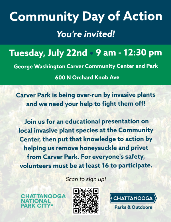 Join us for an educational presentation on local invasive plant species and then put that knowledge to action by helping us remove honeysuckle and privet from Carver Park. For everyone's safety, volunteers must be at least 16 to participate.